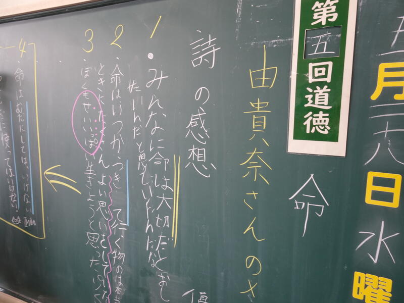 由貴奈さんが、この詩で伝えたかったことを考え、伝え合う活動を通して、一人一人が、「大切な命を『精一杯生きる』こと」について、見つめる時間をつくりました。