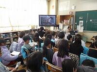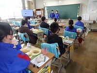 3年生は、総合的な学習の時間に自分たちの学区について調べ、分かったことを発表する学習を行ってきました。事前に発表したものを録画し、互いの学校で視聴しました。たくさんメモしながら見ることができました。
