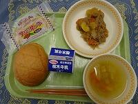 栃木市産の農畜産物を使った献立で、ごはん 牛乳 <とっても おいしかったです>