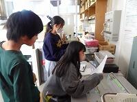 2人で1つのミシンを使うので、ペアで協力しあいながら使っていました。苦戦している子もいましたが、ペアの子だったり、同じグループの子たちと助け合って、作ることができました。まっすぐ縫う難しさであったり、周りをミシンで縫う難しさなどを感じていたと思います。