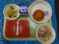 いよいよ給食週間最後の日です。今日の献立は、ご飯、牛乳、ハムカツ、こんにゃくサラダ、ワンタンスープでした。ハムカツがサックサクで、おいしかったです。保健給食委員さんも、毎日のクイズ、ありがとうございました。勉強になりました。