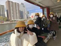 6年生は、今、日の出桟橋を出発し、浅草までクルーズを楽しんでいます!風が心地よく、とてもいい天気です!