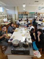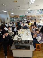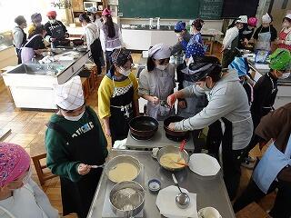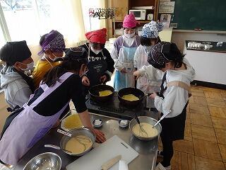 学年PTA行事で使用したうどん粉を有効活用し、教頭先生の発案でクレープ作りに挑戦しました。
