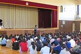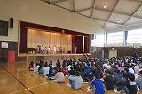 最初は図書委員のみなさんが「図書館室利用の仕方」についてわかりやすく劇にしてくれました。すばらしかったですね。校長先生のお話では、「読書」は、その時の本を読む人の心、感情で、同じ本でも、物語の感じ方が変化します。何度読み返しても好きな本を見つけてみてください。そして、たくさんの本に出会いましょう。というお話がありましたね。