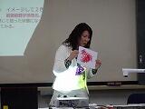 後藤先生は、最初に「脳を活性化させましょう。」と優しい声でおっしゃり、参加者は「怒り」と「平和」をオイルパステル2色で表現しました。次に好きな色を使い、直線・曲線・点点・という表現を使い、世界でたった一つの作品を作りました。作成中、先生が回ってくださって、「素敵な色ですね。」と受け止めてくださいました。絵を褒められたことがないわたしは、その言葉を聞いて肩の力が抜けました。