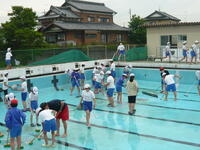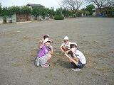 西門の水道付近で活動していたのは、科学クラブ。「楽しいー。」フィルムケースを使ってバブロケットに挑戦しました。「ぽっ!」音がすると、ケースが3mくらい飛んでいました。バブのいい匂いがしました。