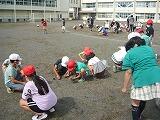 校庭東で空缶を蹴って活動していたのは、ふるさとクラブ。缶蹴りをしていました。校庭が広すぎて、隠れるところが少なくて鬼がなかなか缶から離れず、「探しに行けー」という声も聞こえました。
