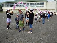 オープニングでは、「藤朗」も登場して、表現力豊かなコント(?)を披露し、笑いが起こっていました。企画委員会の児童が盛り上げて、つかみはOK!その後、なかよし班ごとに自己紹介をして、記念写真を撮りました。最後に班ごとに「へびじゃんけん」をしました。高学年の児童は、1年生について一緒に走ってくれたり、「じゃんけんぽん!」と大きな声でリードしたりして、1年生が安心してゲームに参加できるよう、進んで行動していました。みんな本気で楽しんでいて、笑顔がまぶしかったです。藤岡小の児童はみんなで仲良く活動できますね。