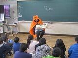 今日は、ふじおかおはなし会「コロポックル」のみなさんが来校し、人形劇鑑賞会を行ってくださいました。1・2年生が参加しました。始めに紙芝居「泣いた赤おに」、次に人形劇「一本歯のゲタ」、最後にハロウィンにちなんでおばけのパネルシアターを鑑賞しました。子どもたちは、おはなしに引き込まれ、登場するお人形さんに「あっちに帰ったよ」「おじさんはねずみに食べられちゃったよ」と口々に教えたり、お化けの身振りを「ふーりふり♪ ふーりふり♪」と一緒にやったりして、身を乗り出して鑑賞し、楽しい時間を過ごしました。