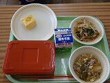 今日の給食は、「とち介ランチ」でした。献立は、ご飯、牛乳、豚肉のみそすき焼き煮、とち介卵焼き、にらともやしのおひたしでした.みそすき焼き煮には、お店でなかなか売られていない貴重な「宮ねぎ」が、たっぷり入っていました。甘くてとてもおいしかったです。みんな、残さずに食べていました。