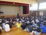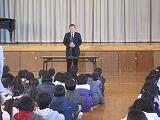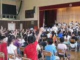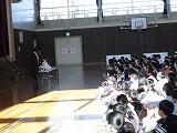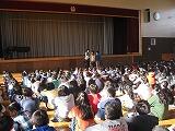 今日は、バレーボール北京オリンピック代表山本隆弘選手が来校されました。講話では、バレーボールとの意外な出会いや夢、目標のお話がありました。最後に、夢で終わらずに、それがしだいに目標になり夢が現実になるように、「「志」があるところに道はありき」という言葉をいただきました。トップアスリートの方のお話を聞くことができてとても貴重な経験になりましたね。後半は、みんなで楽しく体を動かして、6年生の代表児童が山本選手とバレー対決!!!とても盛り上がりました♪