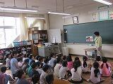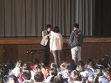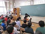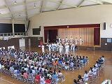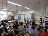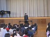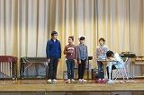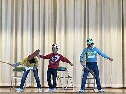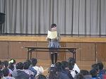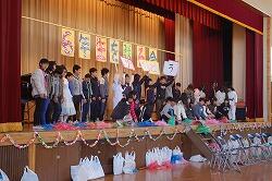 1、2年生は元気よく、3年生になると音読と体で表現する動作を加えて、感情豊かにできました。4年生は音楽に合わせて発表をしました。5年生は、一人に任せられた音読も堂々と大きな声で分かりやすくできていました。なんといっても6年生は、狂言に挑戦!鳶もいましたね。とても面白い音読でした。
