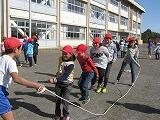 なかよし班ごとに「大根切り」、「郵便屋さん」、「八の字跳び」などを楽しみました。