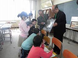 昔遊びは、ゴム跳びや竹とんぼ、めんこ、ケンバ、竹馬、お手玉、おはじき、けん玉、あやとり、コマ回しといったものがあります。高際元校長先生も来校してくださり、お手玉を教えてくださいました。ボランティアのみなさん、ありがとうございました。