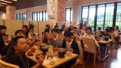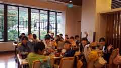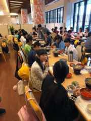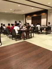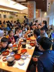 まず、オリエンテーションが行われ、その後各部屋に入室。荷物の整理をしたあと、やっと待ちに待った昼食の時間となりました。お腹はペコペコ。「いただきます」と大きなあいさつ。午後の活動にむけてみんな食用旺盛です。
