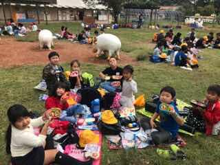 ことができました。朝の雨も、昼には止んで、芝生広場で気持ちよくお弁当を食べることが