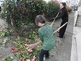 本日は、PTA奉仕作業がありました。今回は、校庭の落ち葉清掃、校内の窓ふき、遊具のペンキ塗り・庭木剪定、農園・花檀作業の仕事を、それぞれやっていただきました。