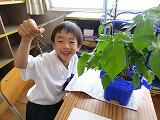 手のひらと同じくらいの大きな葉が増え、どんどん成長してきました 葉の形が芽の形と違うこと、また同じ葉でも友達と形が違うことに気付きました