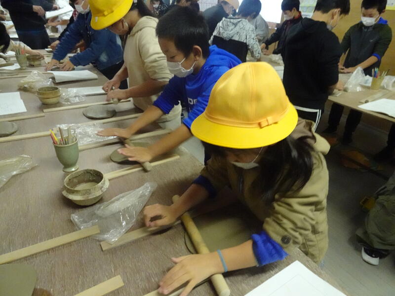 陶芸体験では、自分の好きな形のお皿やコップを一生懸命作っていました。