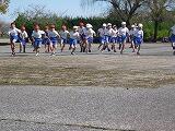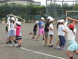 高学年は外側大回り下学年は内回りで、休み時間終了のチャイムが鳴ると同時に校庭のトラックを走り出します。走る時間は5分間で音楽が流れ、先生方も一緒に走っています。