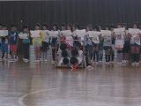 その後体育館では、「廊下」や「階段」、「トイレ」、「図書室」そして「校庭」に居たときはどう行動すればよいか、映像を浸かって、全児童と一緒に考えながら確認をしました。先生の話を聴き、自らしっかりと考えることができました。そして”シェイクアウト”という、防災訓練の考え方を学びました。 。