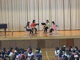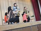 10/12(水) 本日の午前中、体育館で音楽鑑賞会がありました。今回の音楽鑑賞会は、栃木市文化会館の事業の一環として行われました。今回の演目は「サックス四重奏」です。きれいな音色に癒やされながら、ジブリの曲や音楽の授業で合奏練習をしている曲の演奏を聴きました。曲名を聞いたたけでは分からない曲も演奏が始まると”知ってる”といった表情で楽しく聴いていました。また高学年の代表児童がサックスに挑戦する時間や低学年の代表児童が楽器に触れ体験する時間もありました。 保護者の方や地域の方もご覧いただき、楽しんでいただきました。サックスに合わせて歌った校歌もとても上手でした。芸術の秋にふさわしい一日になりました。