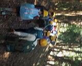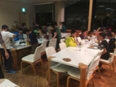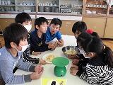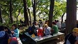 ちょうどお昼ご飯になりました。3つの班が集まっています。