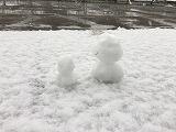 まだ足場が悪くなる前に昇降口付近で作った雪だるまです。