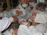 首都高を抜けたので、お待ちかねの「おやつタイム」。今まで眠そうだっこ子も「おやつタイム」と聞いてパッと目を覚ましました。どの子も本当にうれしそうです。