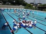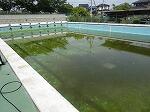5月31日(火)5・6年生でプール清掃を行いました。運動会で全力を使い果たし、燃え尽きた感じもしていた5・6年生ですが、よく働いてくれました。緑色のプールが、だんだんきれいになってくると、うれしくて、床をこするブラシにも力が入ります。みんなで磨き上げたプールには、青々と水が張られ、プール開きを待っています。