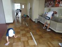 今週は「きれいな学校週間」です。いよいよ学期末。それぞれの清掃場所で重点的にきれいにする場所を決めて、日頃できないところまでがんばっています。担当場所の先生といっしょに、ピカピカの学校を目指します。箒とちり取りの使い方の上手な高学年児童は、たくさんゴミを集めていました。低学年児童は床も水拭きでしっかり拭いていました。片付けも並び方もよくできました。きれいになりましたね。ご苦労様でした。