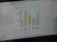 お楽しみ会にやりたいものについて、タブレットを操作して、男子と女子のデータが分かる棒グラフを表すことができました。