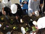 11月18日(火)に朝のいきいきタイムで花いっぱい運動が行われました。 飼育栽培委員が中心になって全校児童に苗の植え方などを説明した後、各学年に分かれて校舎南側の花壇に、チューリップの球根とパンジーの苗を植えました。早く苗が大きくなって、たくさんのパンジーやチューリップの花を見るのが楽しみになりました。