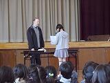 修了式が終わった後に、ALTのマイク先生のお別れ会を行いました。年度末の異動でマイク先生が中学校に勤務することになりました。児童代表によるお別れの言葉や拍手でお見送りをしました。マイク先生、ありがとうございました。