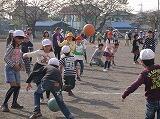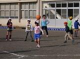 ロング昼休みになかよしタイムが実施されました。今回は、班対抗で三面ドッジボールが行われました。高学年は利き手でない方の手で投げるという思いやりのルール付きです。勝ち負けは関係なくみんなで楽しんでいました。