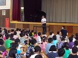 始業式に校長先生から「友達同士で協力して楽しい思い出を作ろう。」「体を鍛えて健康と安全に気を付けよう。」「授業に集中し勉強をがんばろう。」というお話がありました。また、児童代表の2年生からは、夏休みの思い出や、2学期にがんばりたいことなど、大変上手な発表がありました。最後は6年生の児童のピアノ伴奏で全員で校歌を歌いました。