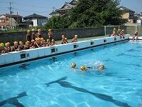今週は水泳記録会週間です。今日は1,3,4年で水泳記録会が行われ、個人のめあてに向かってがんばって泳ぎました。1年生ではプールの横13mを泳げる子もいて驚きました。3,4年生は記録会終了後、ゴルフボール拾いゲームや波作りのお楽しみもありました。今年のプール活動も、もうすぐ終わりです。みんな、最後まで、安全に楽しく活動できました。