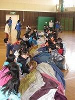 その後、高学年の子ども達が体育館で煙避難体験をしました。とても真剣に取り組みました。