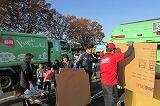 学校に帰るとすぐに、給食がトラックで運ばれてきました。