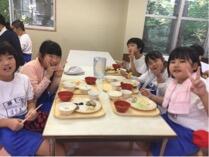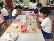 説明を聞いて、一生懸命作りました。朝食の時の静けさはどこへやら。元気いっぱいの子ども達です。