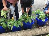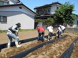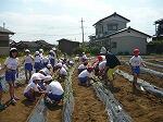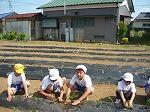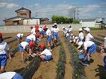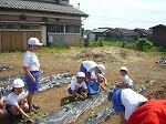 6月3日(土)に、マルチを貼っていただいた畑に、今日はサツマイモの苗を植えました。一生懸命水をやりましたが、根がつくまで心配です。美味しいサツマイモがたくさんなりますように。