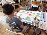 今日は、図工で「えのぐじま」を描きました。慣れない絵の具と筆を使って、思い思いの絵を仕上げていました