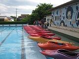 6時間目のクラブの時間に、スポーツクラブがカヌーに乗りました。