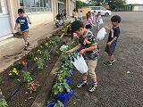 今日は栽培委員会さんの司会で、花いっぱい運動の集会を行いました。その後、花壇は夏の花に模様替えです。サルビア、マリーゴールド、日日草を植えました。