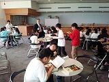 青空になりましたが、波浪注意報が出ているので砂浜での活動はできませんでした。でも、海に来たので砂浜を少し歩きました。また、海の広場で集合写真も撮りました。太平洋の青い海を見ることができ、よい思い出になりました。午前中の活動はプール活動です。海の見えるのプールで海で泳いでいるようでした。お昼は、カレーライスで大盛りをいただきました。