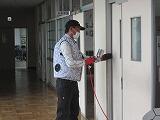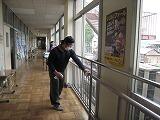 今回は、教室の壁面や窓・ドア等、校舎内全体のほか、体育器具の跳び箱やマットにもコーティング処理を施してくださいました。光触媒を吹きかけた場所は、光が当たることによりウイルスや菌が分解され、ウイルスの感染リスクが抑えられます。光があれば効果は持続するとのことです。