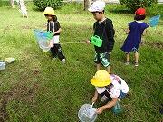 公園に着くと、子どもたちは好きな場所で虫探しを楽しみました。2年生が1年生の面倒を見ている様子も見られ、心が温まりましたバッタやちょうちょ、トンボなどいろいろな虫を捕まえて、その後観察しました。子どもたちは、虫の動きや足の本数にも興味をもって観察しており、良い学習になったと感じました