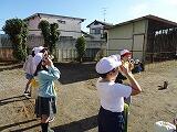 子どもたちは、「太陽の反対側にかげが見える!」と気付き、観察カードに記入していました。