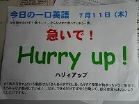 English☆OneーPoint☆Lesson “Hurry up!” 投稿日時 : 2024/07/11 藤岡小管理者 カテゴリ:今日の出来事 今日の給食の時間、ALTの先生と放送委員の児童でワンポイントレッスンがありました。 今日は、時間がないぞ!急げー!というときに使う英会話“Hurry up!" 忙しい毎日、こんな時はぜひ、英語で伝えてみるのもいいですね。今日もALTの先生の発音を聞いて素晴らしい放送委員さんの発音でした。Good job! Tweet {{options.likeCount}} {{options.likeCount}}