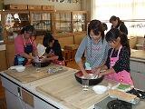 14日(土)にPTA主催(成人研修部担当)の親子そば打ち教室が開かれました。講師に、荒立在住の松島さんご夫妻をお招きして、家庭科室においてそば打ちを行いました。参加者のほとんどの方が初体験ということでしたが、丁寧で分かりやすいご指導のお陰で、とても上手におそばを作ることができました。子ども達もこねたり、伸ばしたりと手際よくできました。最後に、松島先生の作ったそばと参加者の作ったそばをあわせて、ゆでて試食しました。とてもおいしかったです。今年の年越しそばは、ご家庭でチャレンジするとの事でした。講師の先生や研修部の役員さん、アシストネットの平間さん、葛生さん、ご協力ありがとうございました。